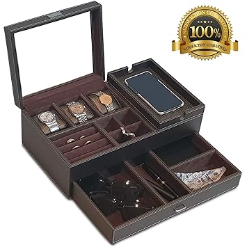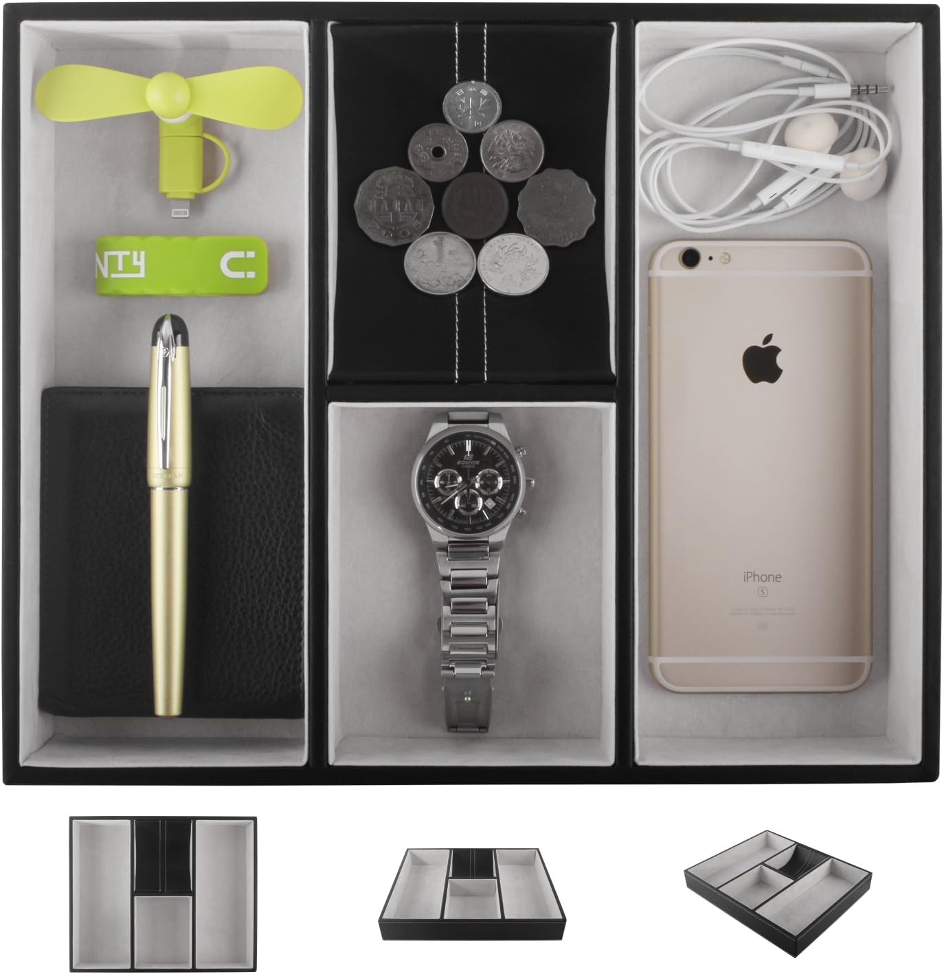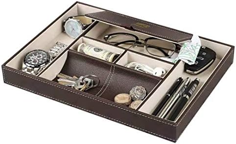 Mantello valet tray nightstand organizer charging station leather 6 compartments, black, large mantello.