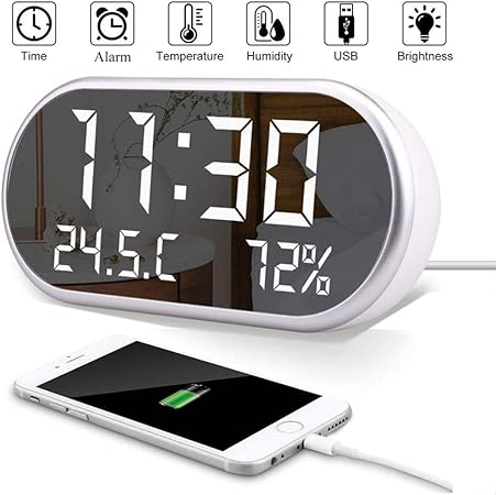 Led Digital Alarm Clock Home Mirror Led Electronic Clock Bedside Alarm Temperature Display Bedroom Nightstand Clock With Usb Charger Walmart Com Walmart Com from i5.walmartimages.com