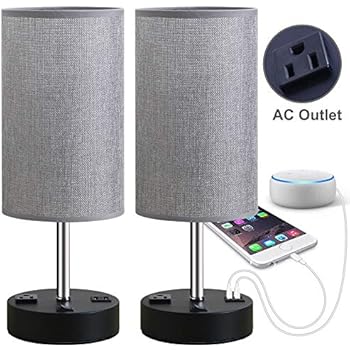 Get Nightstand Led Lamp With Outlet Gif. Night stand lamp with outlet. Porseme tripod table lamp led nightstand modern desk lamp with fabric linen shade.