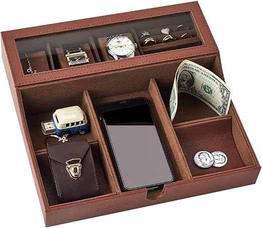 This catch all tray for men is perfect for everything that you have on your nightstand, in the bedroom, entryway, office or hotel room.